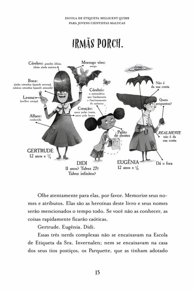 Prepare-se para uma aventura completamente maluca, com três irmãs, uma minhoca gigante faminta e uma cientista um tanto... esquisita. Gertrude, Eugênia e Didi vivem com os tios e os primos em uma velha casa, até que, numa inesperada reviravolta, são convidadas para estudar na escola comandada por uma tal de Millicent Quibb. Com ajuda da excêntrica Quibb, o trio descobre que uma sombria organização -- a Associação de Pesquisa Crenética -- criou um kyrgalops, uma minhoca voraz que devora desde pedras a filhotes de cachorro, e que ameaça destruir toda a cidade para libertar seu fundador, o temido Talon Tubaronü. Agora, as garotas vão precisar de toda a sua esperteza para impedir o desastre -- e, quem sabe, descobrir alguns segredos pelo caminho. -- por Kate McKinnon (Autor), Alfredo Cáceres (Ilustrador), Julia Bussius (Tradutor)